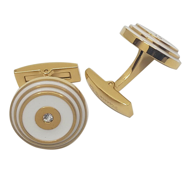 PICASSO AND CO Round Stainless Steel Gold/White Laquer Cufflinks PCRNDWG
