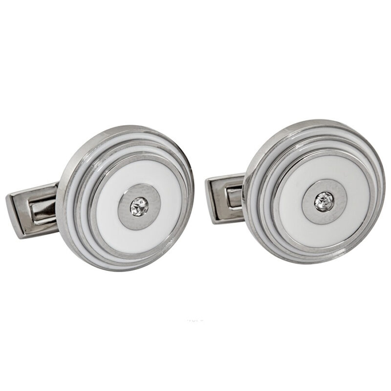 PICASSO AND CO Round Stainless Steel/White Laquer Cufflinks PCRNSW