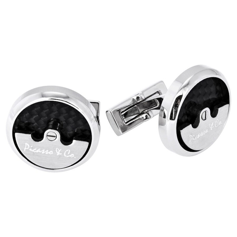 PICASSO AND CO Round Stainless Steel Cufflinks- Rhodium/Black PCRTCS